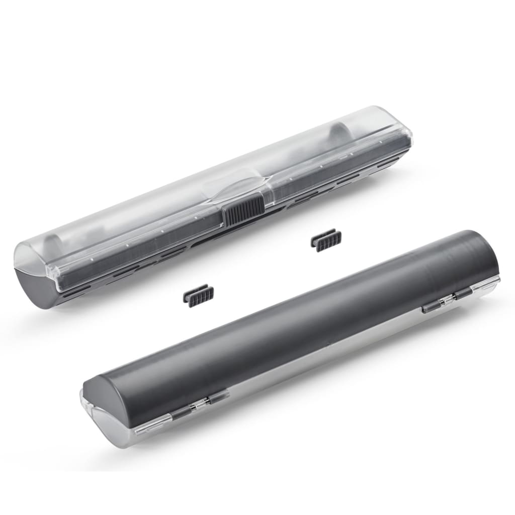 Grazie al coltello incorporato, i fogli di alluminio e plastica possono essere tagliati facilmente, rendendo questo strumento da cucina davvero efficiente. Inoltre, i rotoli sono facili da cambiare. È regolabile e ha due fermi mobili per posizionare qualsiasi rotolo nella posizione ideale. I rotoli che misurano fino a 34 cm di lunghezza e 4,5 cm di diametro sono ideali. È sicuro da usare grazie al pulsante di apertura/chiusura scorrevole. Il coperchio trasparente permette di controllare facilmente il contenuto del dispenser e il livello del rotolo.