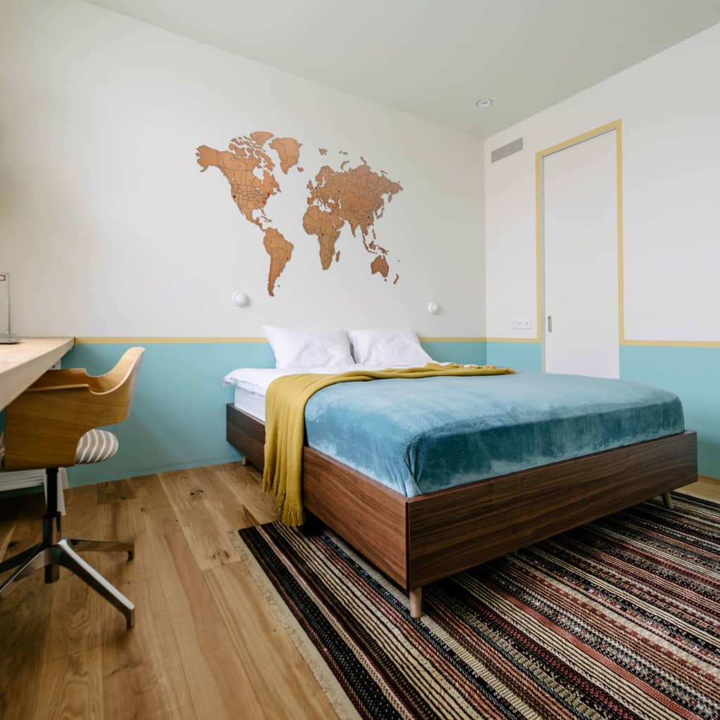 Una volta che questa mappa del mondo originale sarà affissa alla vostra parete potrete personalizzarla aggiungendo i colorati tag della MiMi per indicare i posti che avete già visitato o dove andrete prossimamente!