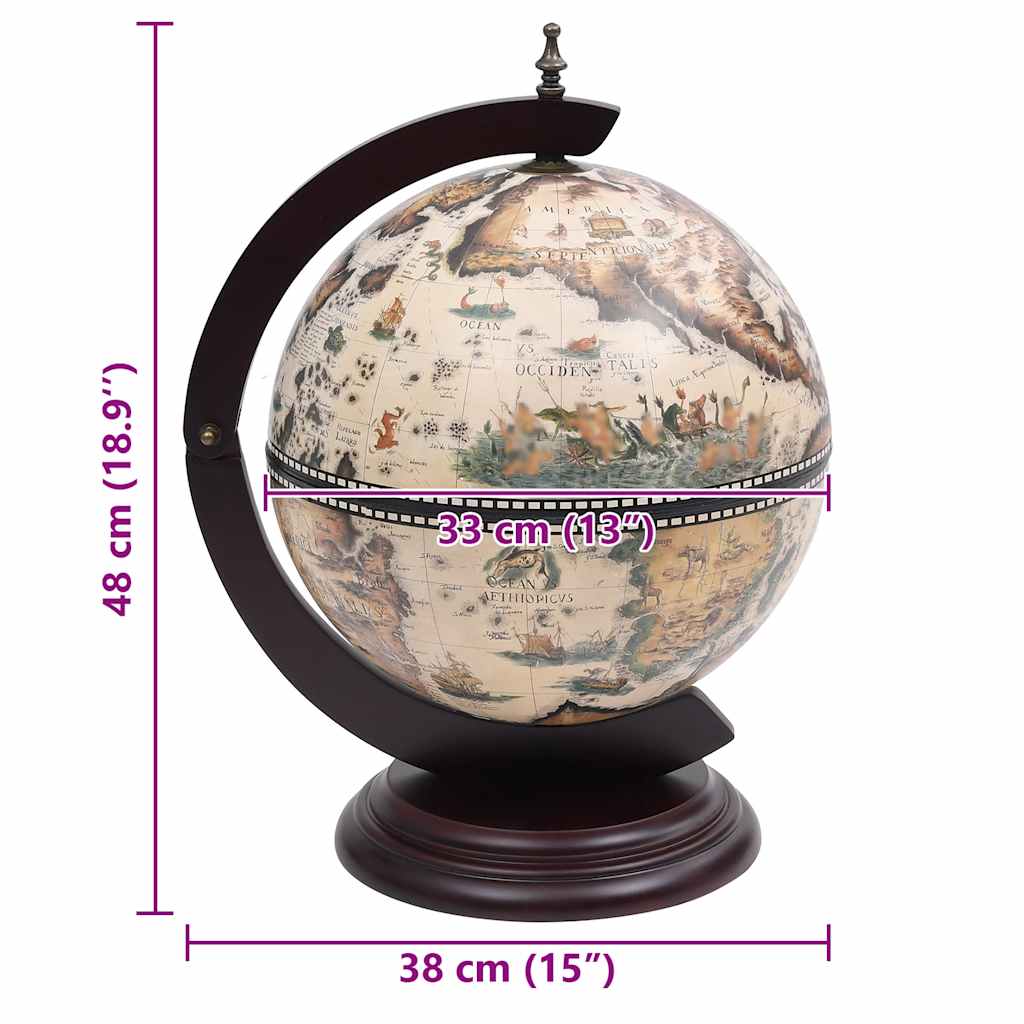 La superficie esterna del globo da bar è avvolta da mappe nautiche di replica del 16° secolo all'esterno e replica di affreschi antichi all'interno, rendendo il globo da bar un'opera d'arte e una bella decorazione per la casa o l'ufficio.