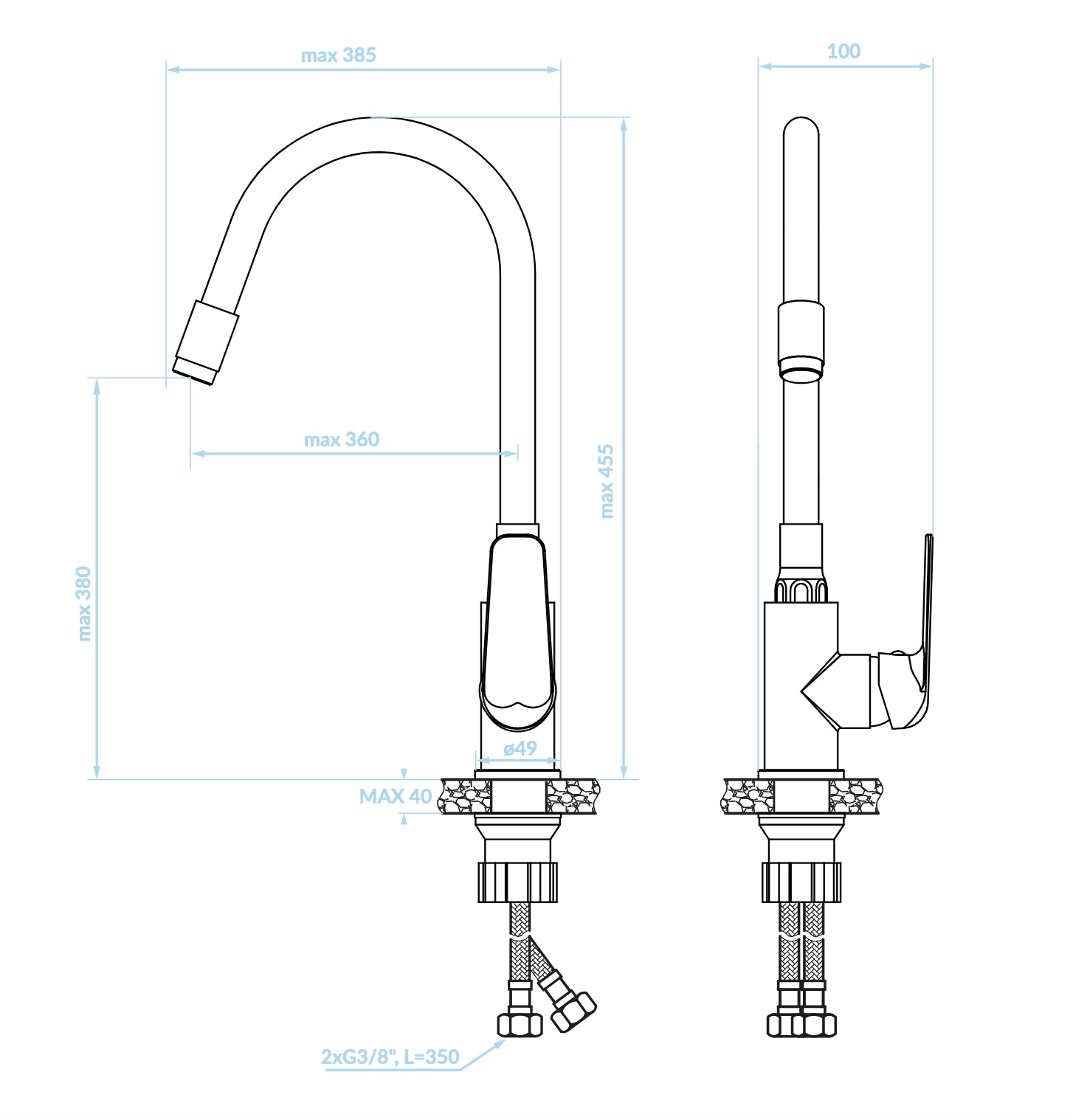 Miscelatore cucina con canna di gomma flessibile beige/tortora