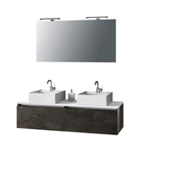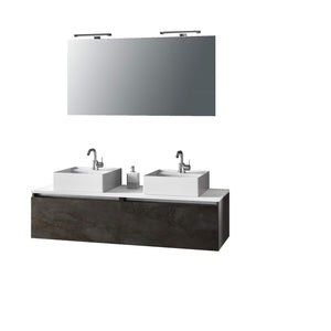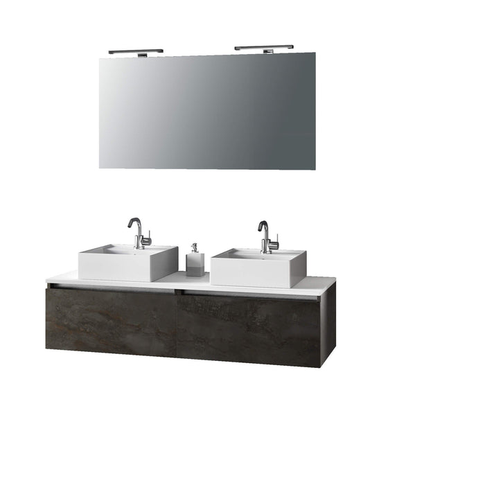 Mobile Bagno 140cm Con Doppio Lavabo, Base Con Cassetto, Specchio E Lampada - Ossido