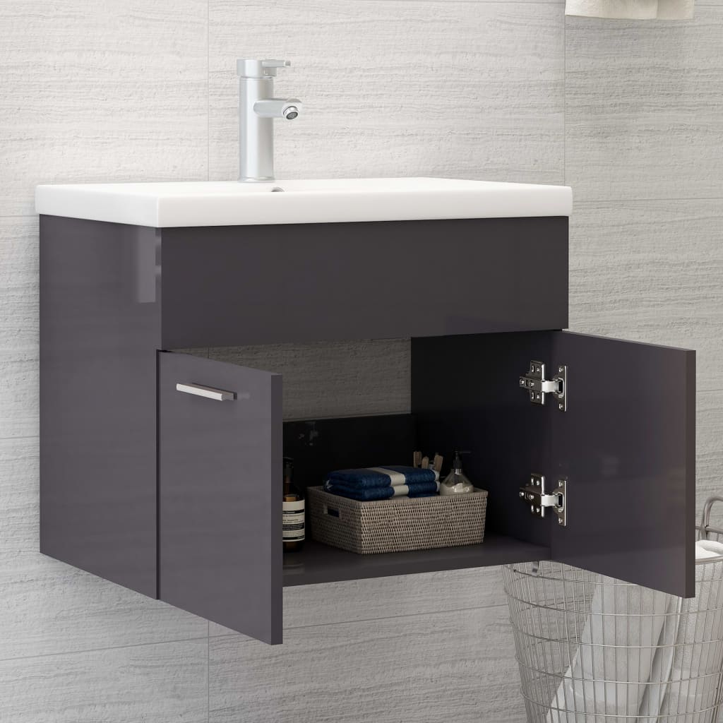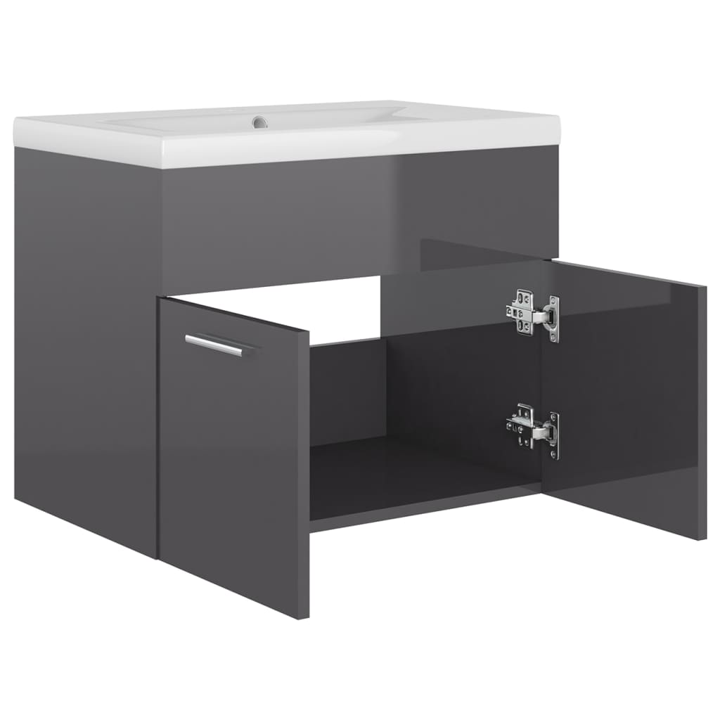 Mobile Bagno con Lavabo Integrato Grigio Lucido in Truciolato 3070828
