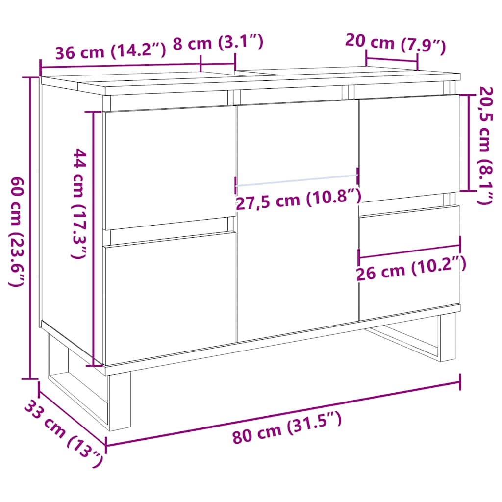 Mobile da Bagno Legno Antico 80x33x60 cm in Truciolato 857238