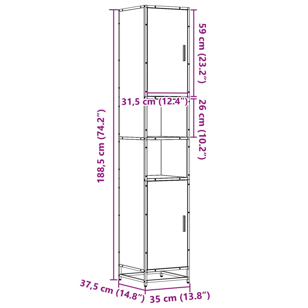 - Dimensioni complessive: 35 x 37,5 x 188,5 cm (L x P x A)