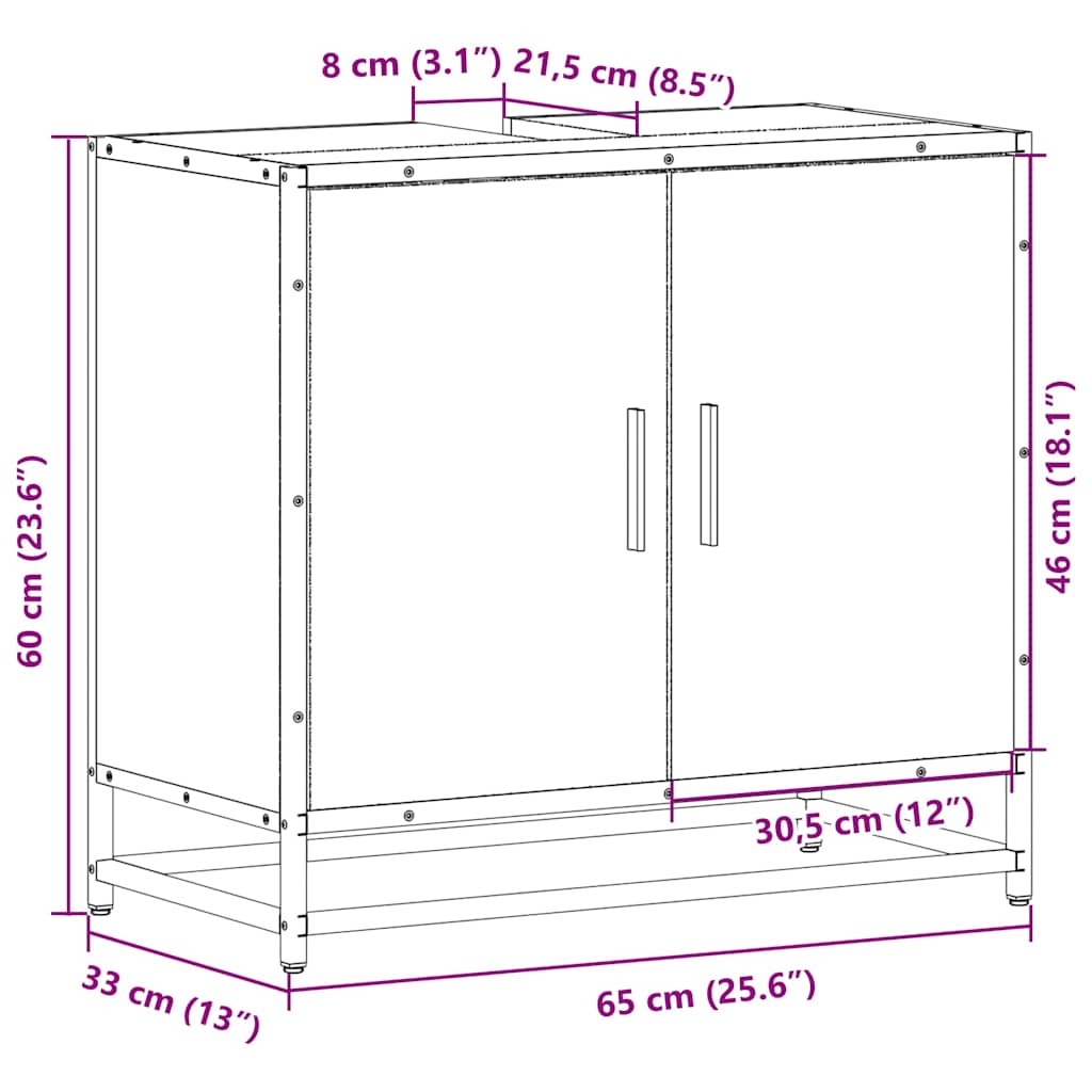 Mobile Lavabo Bagno Rovere Marrone 65x33x60cm Legno Multistrato 849268