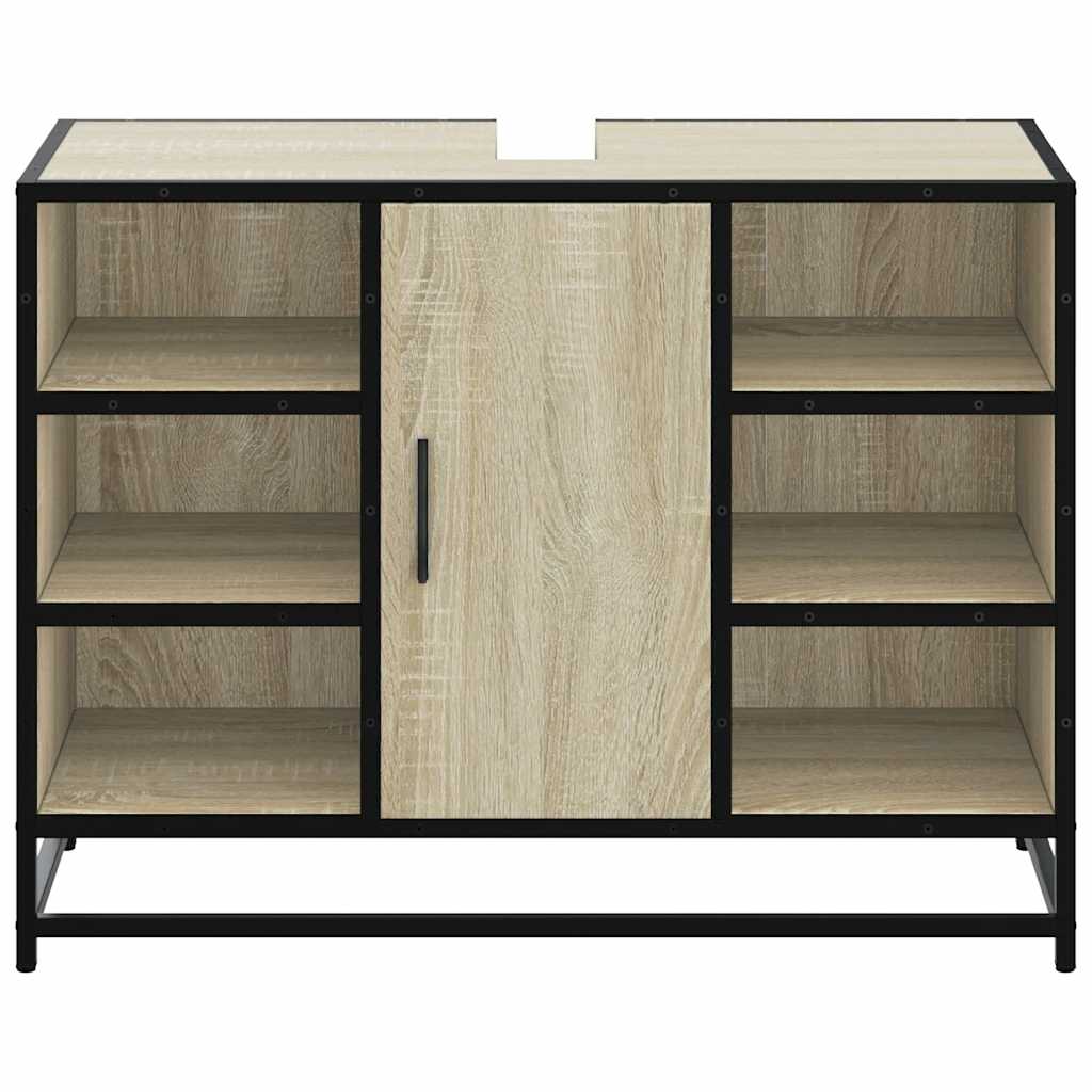 Mobiletto per Lavabo da Bagno Rovere Sonoma 80x33x60 cm Legno Massello 849290