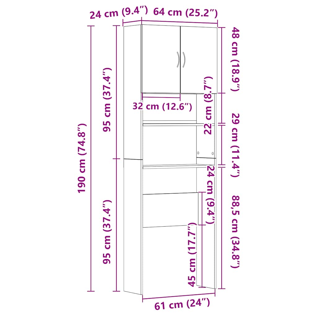 Mobile Lavatrice Rovere Marrone 64x24x190 cm Legno Multistrato 859133