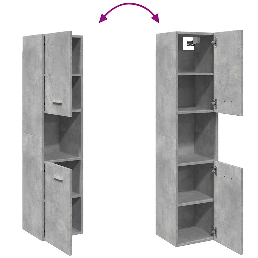 Mobile Pensile da Bagno Grigio Cemento 30x30x130cm Truciolato 856220