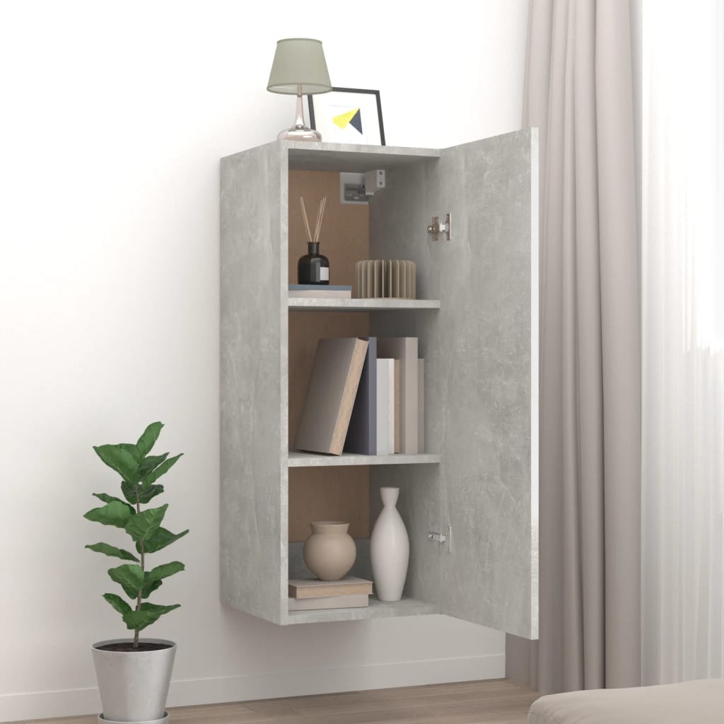 Mobile Pensile Muro Grigio Cemento 34,5x34x90 Legno Multistrato 812442