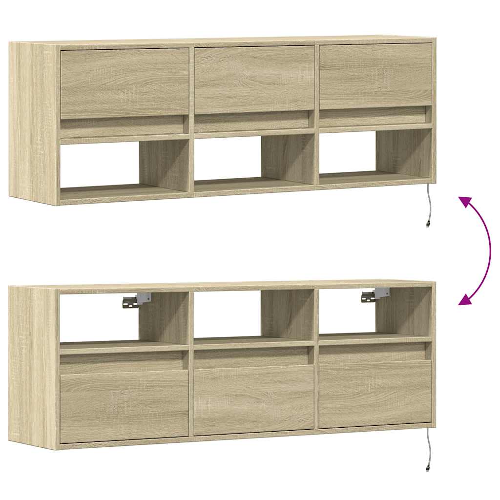 Mobile TV a Parete con Luci LED Rovere Sonoma 130x31x45 cm 852343