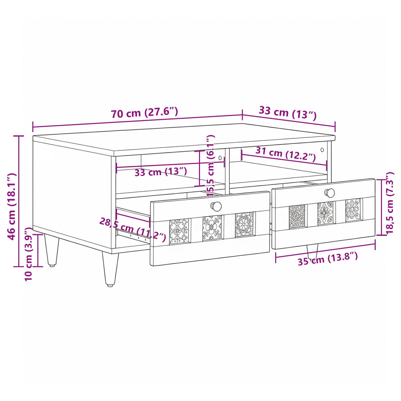 - Dimensioni complessive: 70 x 33 x 46 cm (L x P x A)