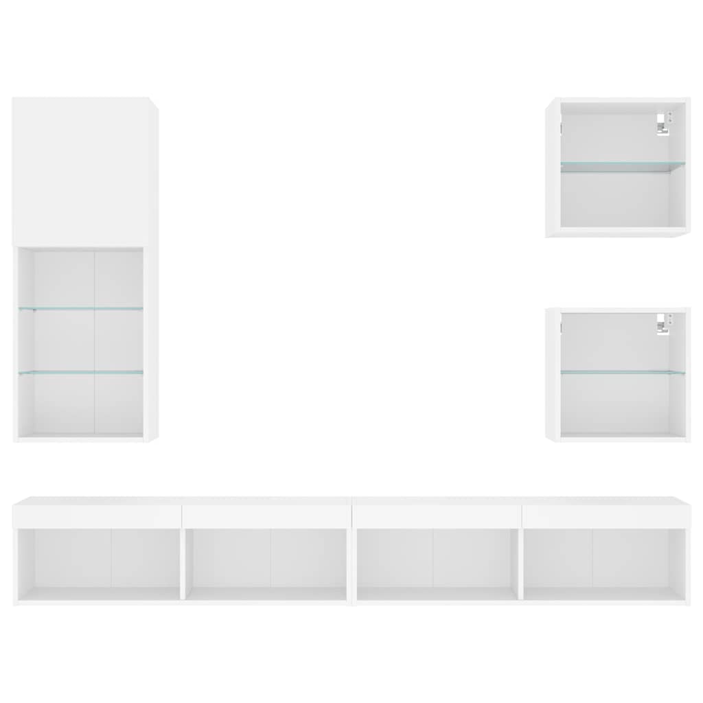 Mobili TV a Muro con LED 5pz Bianchi in Legno Multistrato 3216675
