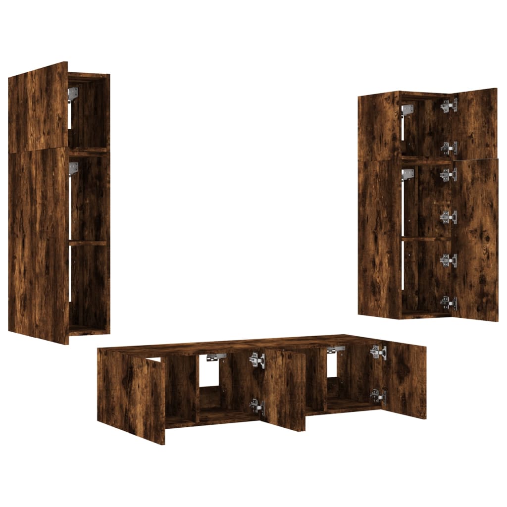 Mobili TV a Muro con LED 6pz Rovere Fumo in Legno Multistrato 3216836