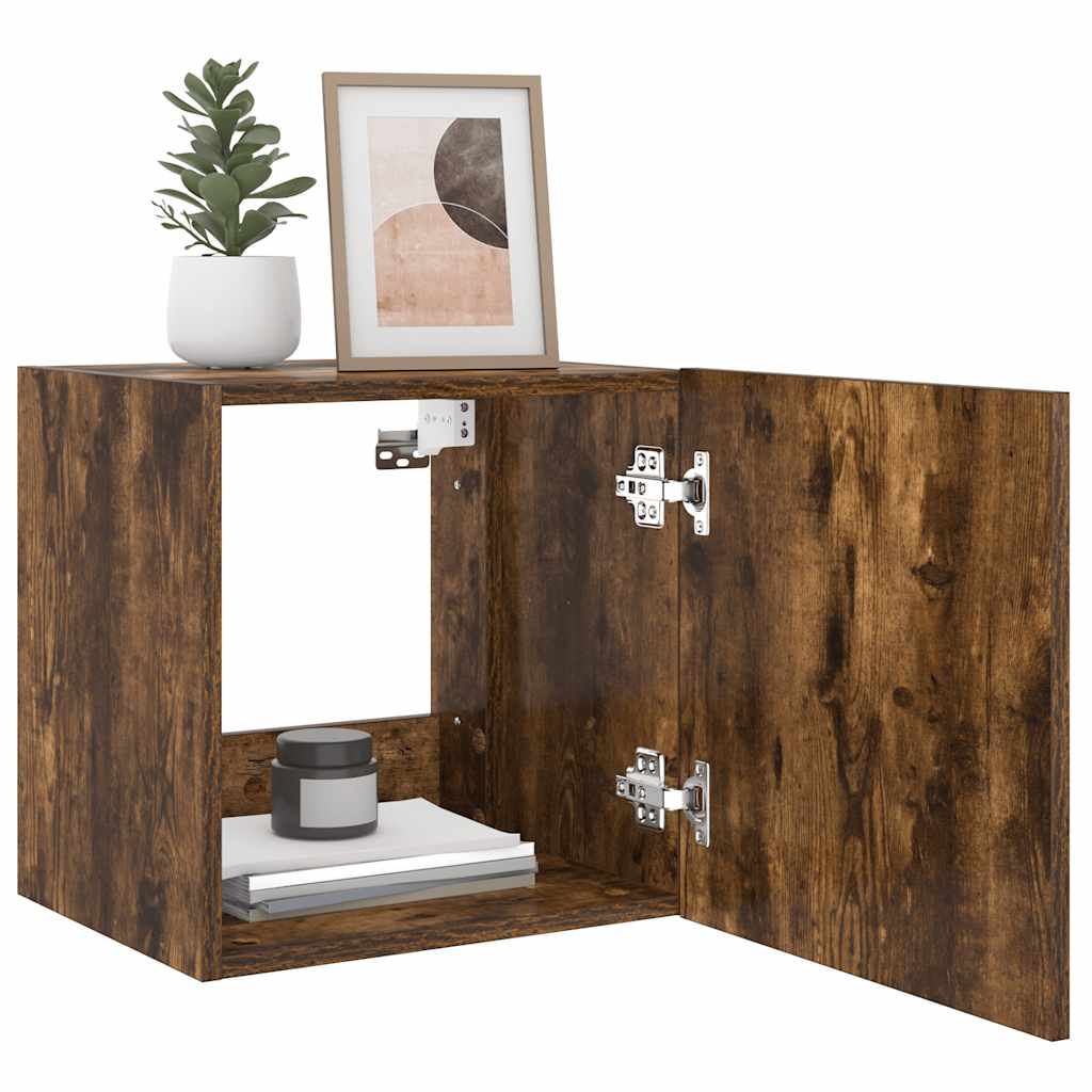 Mobili TV a Parete con Luci LED 2pz Rovere Fumo 40,5x35x40 cm 837255