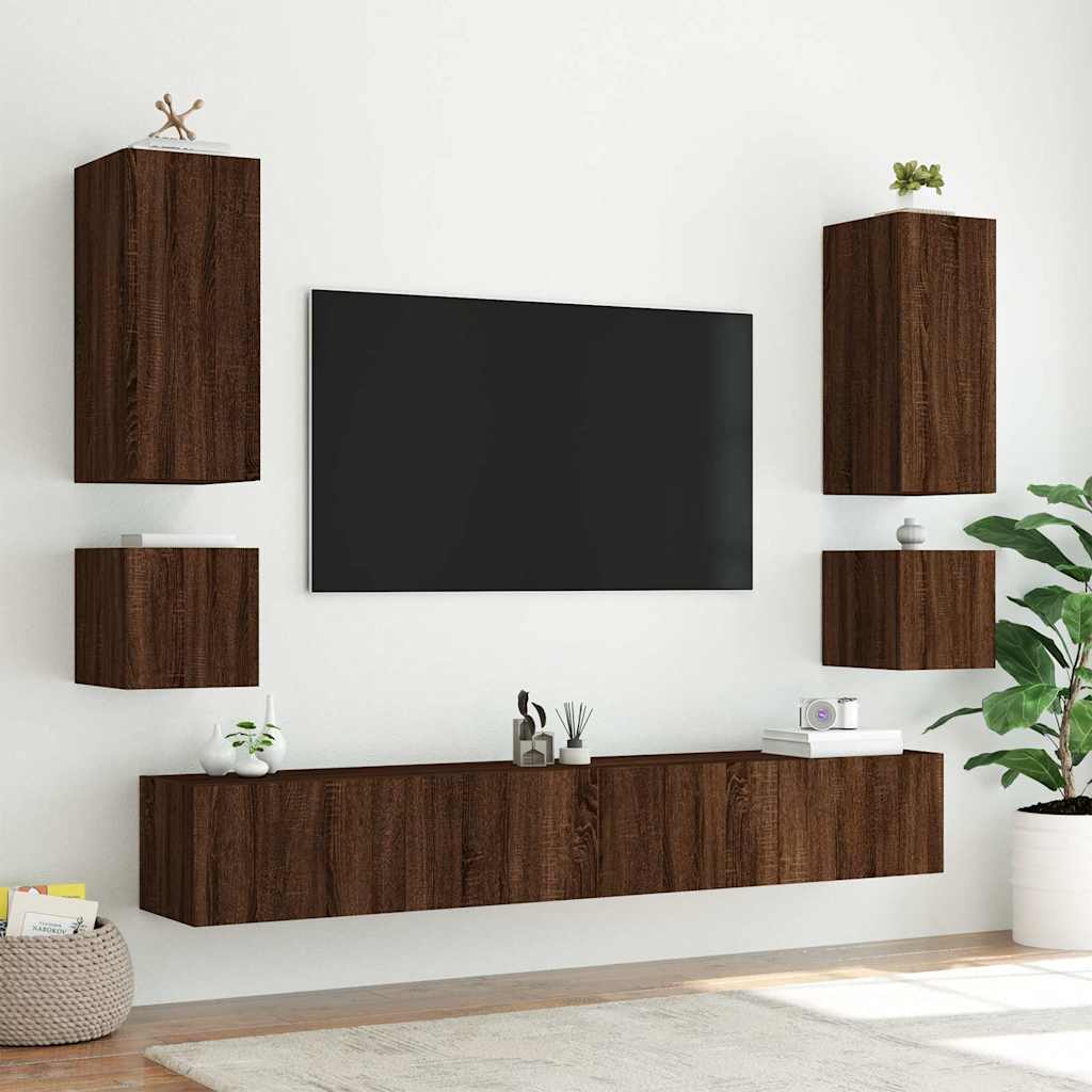Mobili TV a Parete con Luci LED 2pz Rovere Marrone 40,5x35x40cm 837259