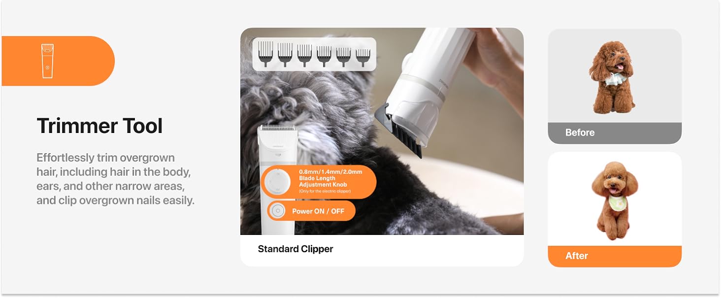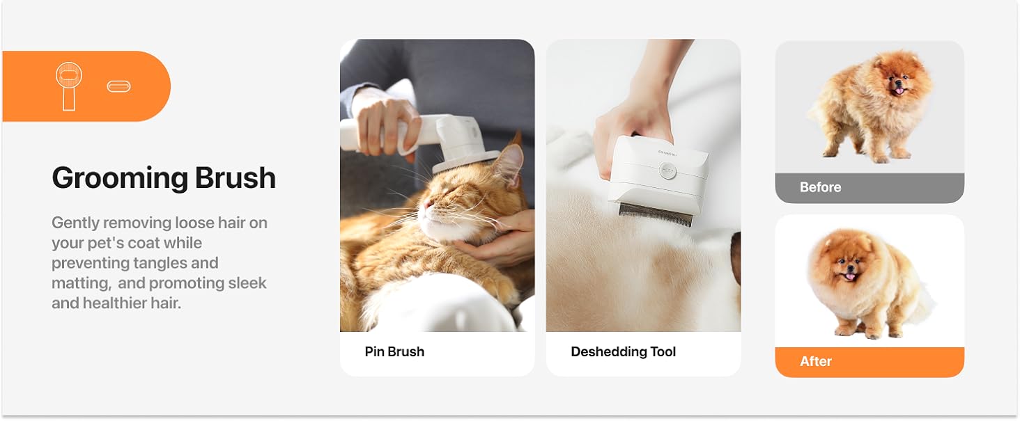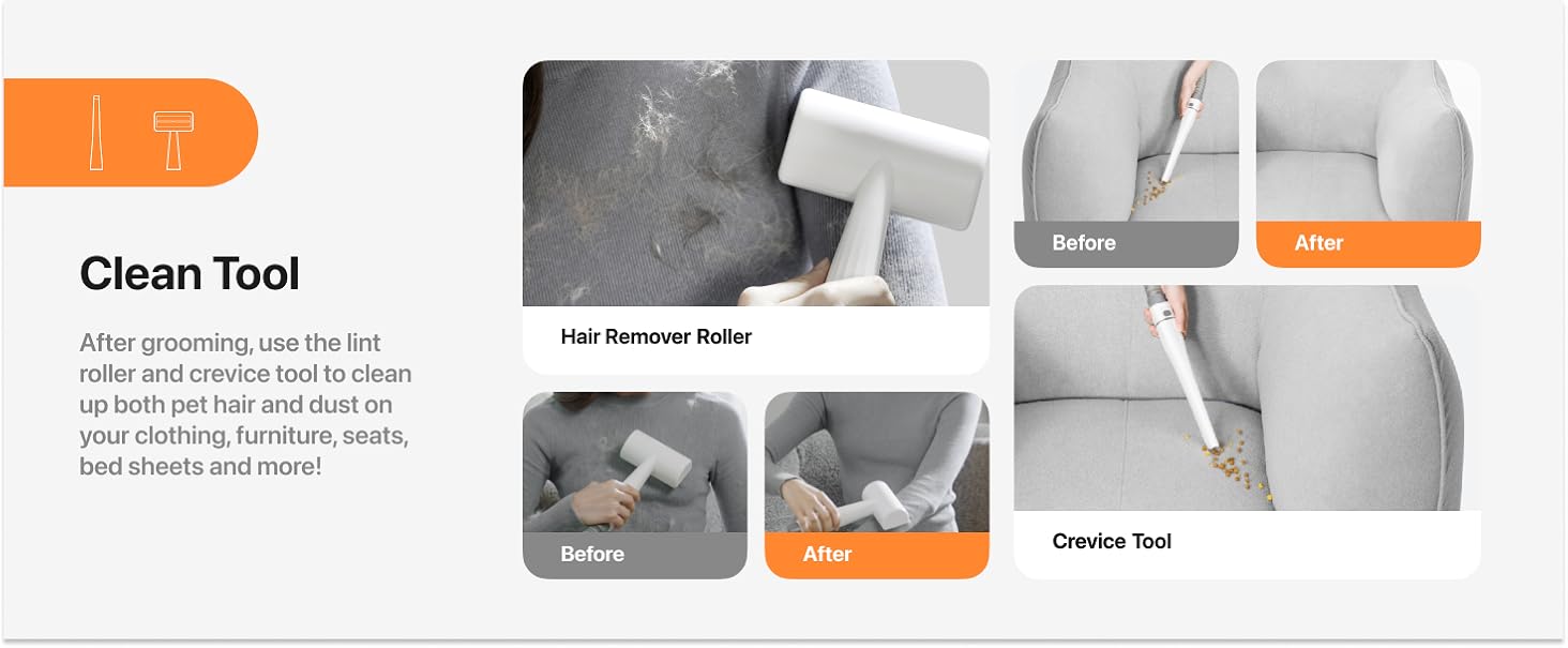 Spazzola a spilli. strumento per la rimozione del pelo e strumento per la rimozione dei nodi rimuovono delicatamente i peli morti. rendendoli lucidi e lisci. eliminando i nodi. Taglia capelli elettrico e smerigliatrice per unghie offrono un taglio eccellente per gli animali domestici. Rullo leva pelucchi e bocchetta per fessure per rimuovere i peli di animali da lenzuola. vestiti e divano.
