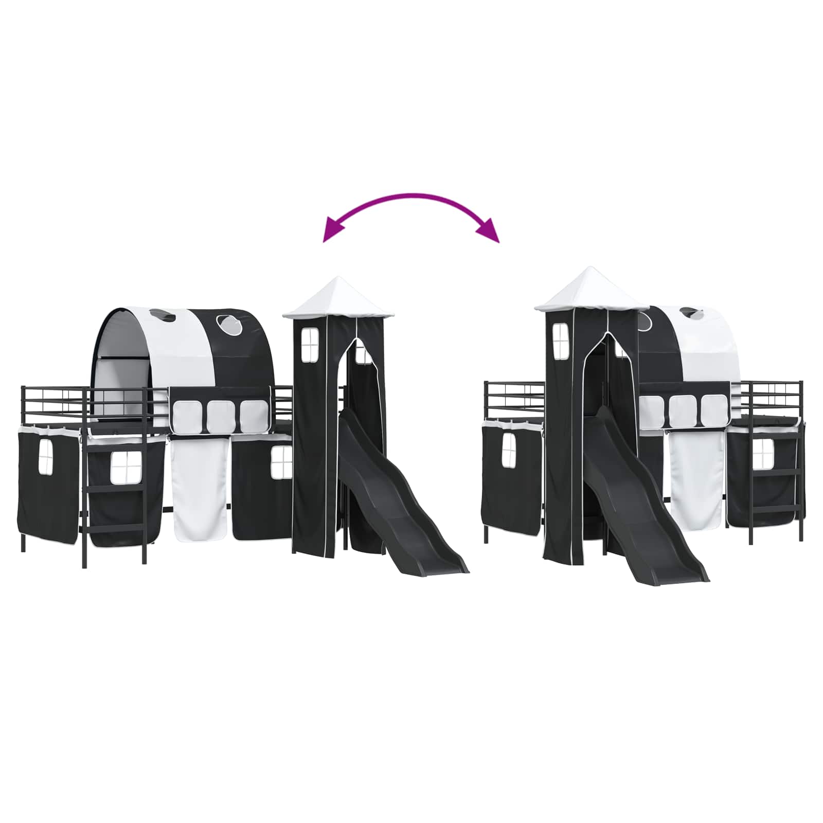 Questa struttura letto a soppalco moderna per bimbi, con tende, arco, scivolo e torre, è una soluzione pratica e divertente per le camerette. È un design fresco e alla moda, un pezzo d'arredo che fa la differenza in qualsiasi stanza. Con la sua torre e il divertente scivolo, rende la notte un momento speciale. Ha un design che sfrutta al meglio lo spazio, perfetta per riflettere lo spirito vivace di un bambino, e offre elementi che stimolano immaginazione e creatività. Il mix di bellezza e funzionalità fa di questo letto un'ottima scelta per spazi dinamici dedicati ai più piccoli.