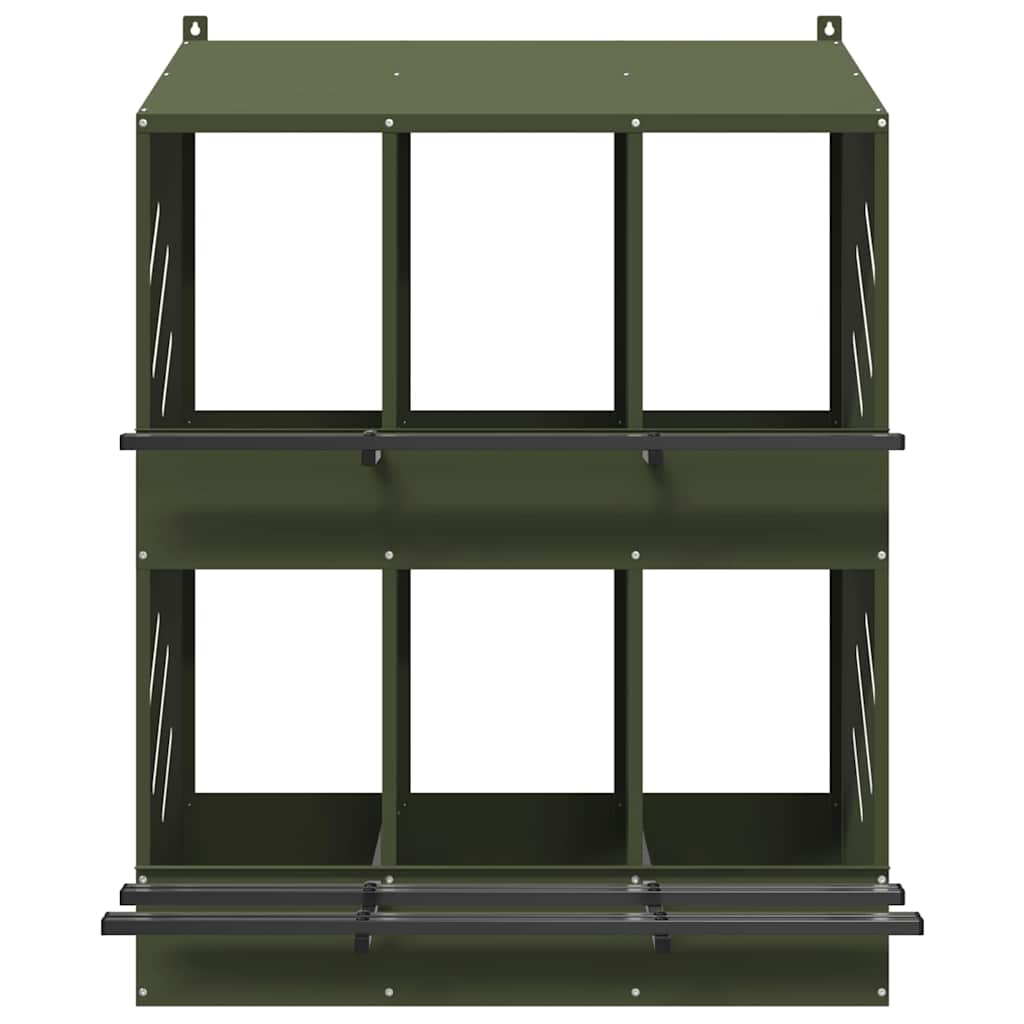 Nido per Polli con 6 Scomparti in Metallo Verde Oliva 864351