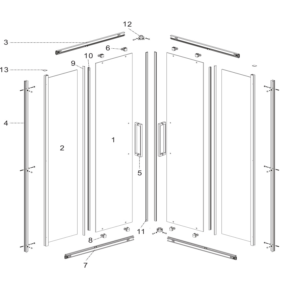 - I due lati che compongono la Cabina doccia vengono forniti già preassemblati e completi di profili orizzontali e verticali