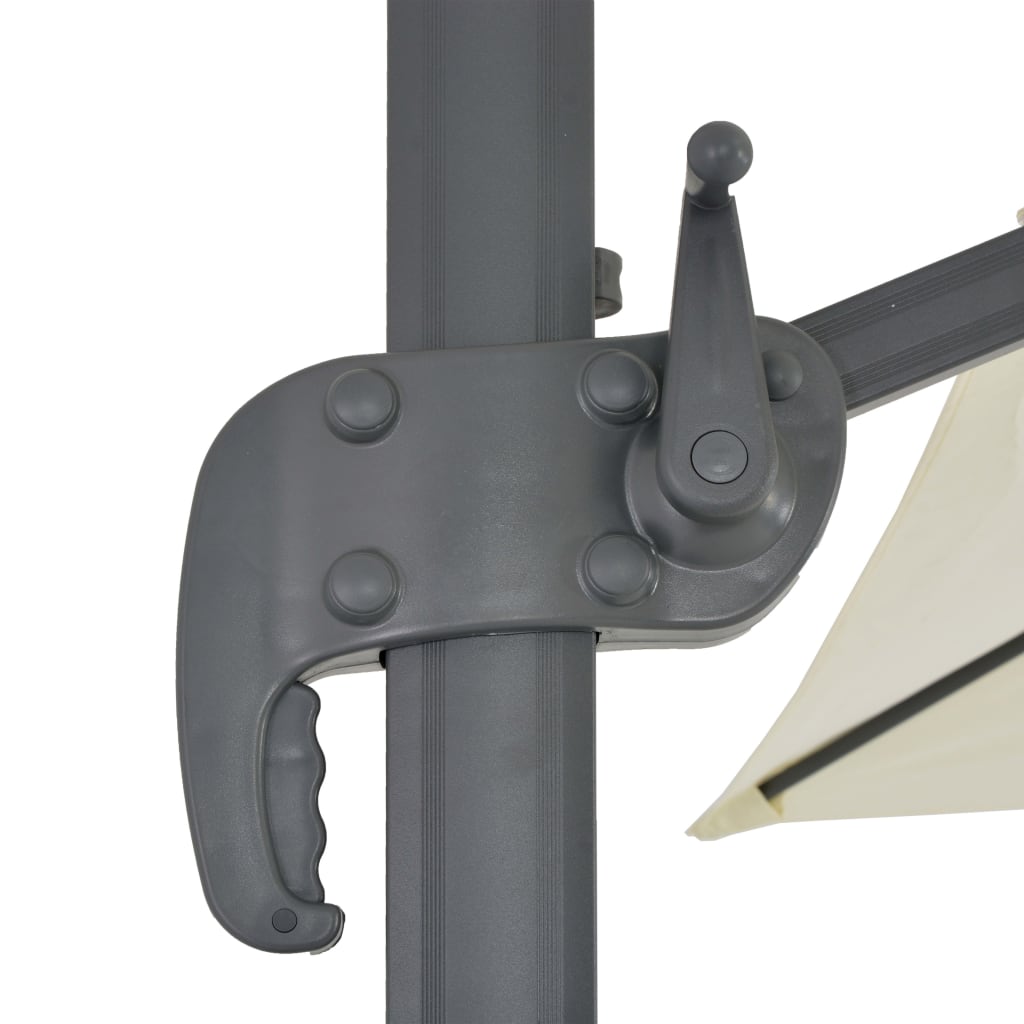 Questo ombrellone da giardino può essere facilmente aperto e chiuso semplicemente girando la manopola sul palo. Il palo in alluminio, insieme alle 8 robuste stecche in alluminio, rendono l'ombrellone da esterno molto resistente. Il design esclusivo di questo ombrellone consente di inclinarlo e ruotarlo a 360 gradi per bloccare il sole. Inoltre, la grande base a croce in acciaio staccabile aggiunge stabilità senza occupare troppo spazio.