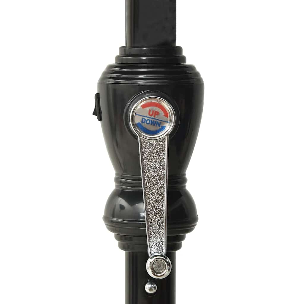 Realizzato in poliestere anti-UV e anti-scolorimento, l'ombrellone da esterno offre una protezione ottimale dal sole. Anche il palo e le stecche in acciaio verniciato a polvere garantiscono stabilità. Grazie alla manovella e all'inclinazione, l'ombrellone è pieghevole e portatile. Può essere montato sul supporto esistente o al centro del tavolo, se sono disponibili dei fori. Le luci a LED integrate, alimentate dal pannello solare, creeranno un ambiente accogliente e romantico di notte.