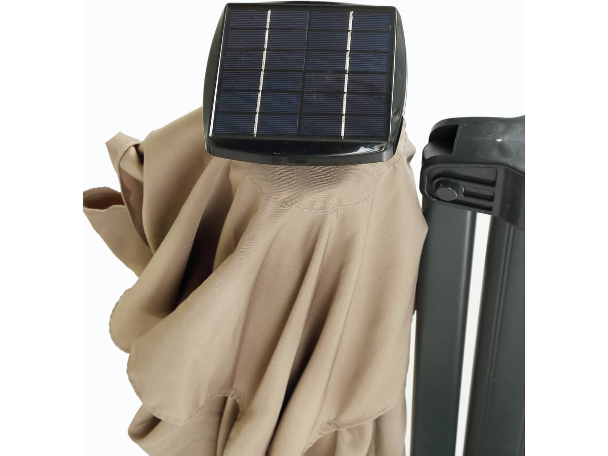 Ombrellone da giardino decentrato con illuminazione a LED - Struttura in alluminio - 3 x 4 m - Taupe - Tela poliestere 250 gr/m2. Piede non incluso.