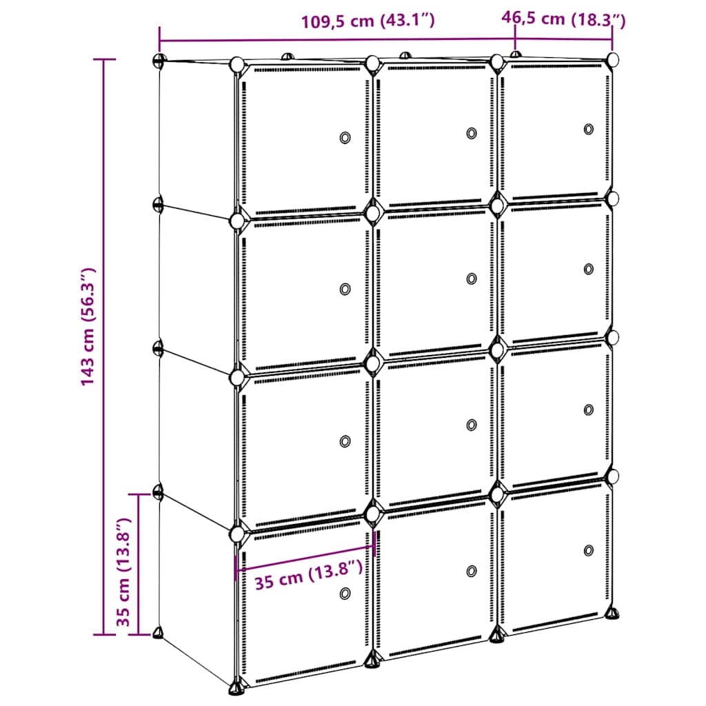 Organizzatore Portaoggetti con 12 Cubi e Aste per Appendere PP 4019582