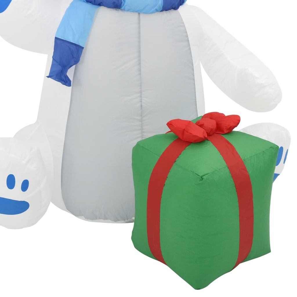 Questo adorabile orso porta un cappello e una sciarpa, con un pacchetto regalo accanto alla sua zampa, donando così un fascino caratteristico all'atmosfera natalizia. Dotato di luci LED a risparmio energetico, l'orso polare si illumina di notte. Può essere facilmente gonfiato grazie alla ventola incorporata e sgonfiato rapidamente in dimensioni compatte per essere riposto fino alle prossime festività natalizie.