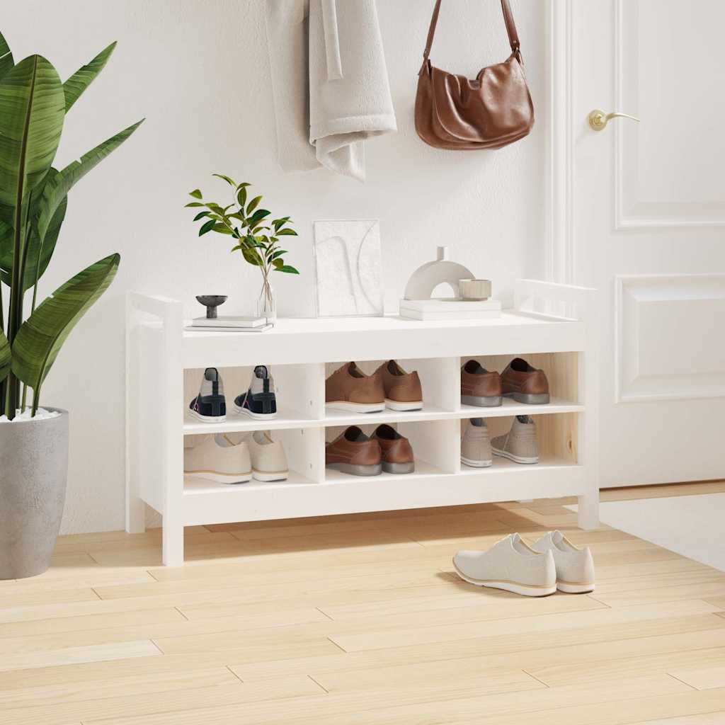 Panca da Ingresso Bianca 110x40x60 cm in Legno Massello di Pino 821790