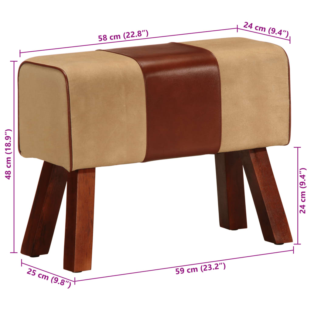 Panca da Palestra 58 cm Vera Pelle Marrone e Massello di Mango 320785