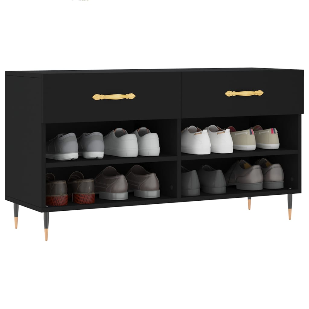 Panca Porta Scarpe Nera 102x35x55 cm in Legno Multistrato 829717