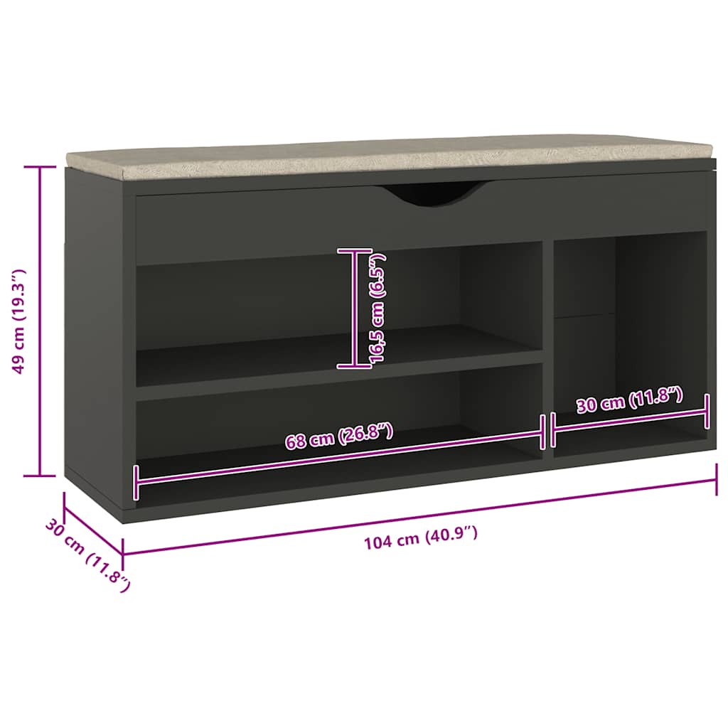 Panca Porta Scarpe con Cuscino Grigia 104x30x49cm Multistrato 326752