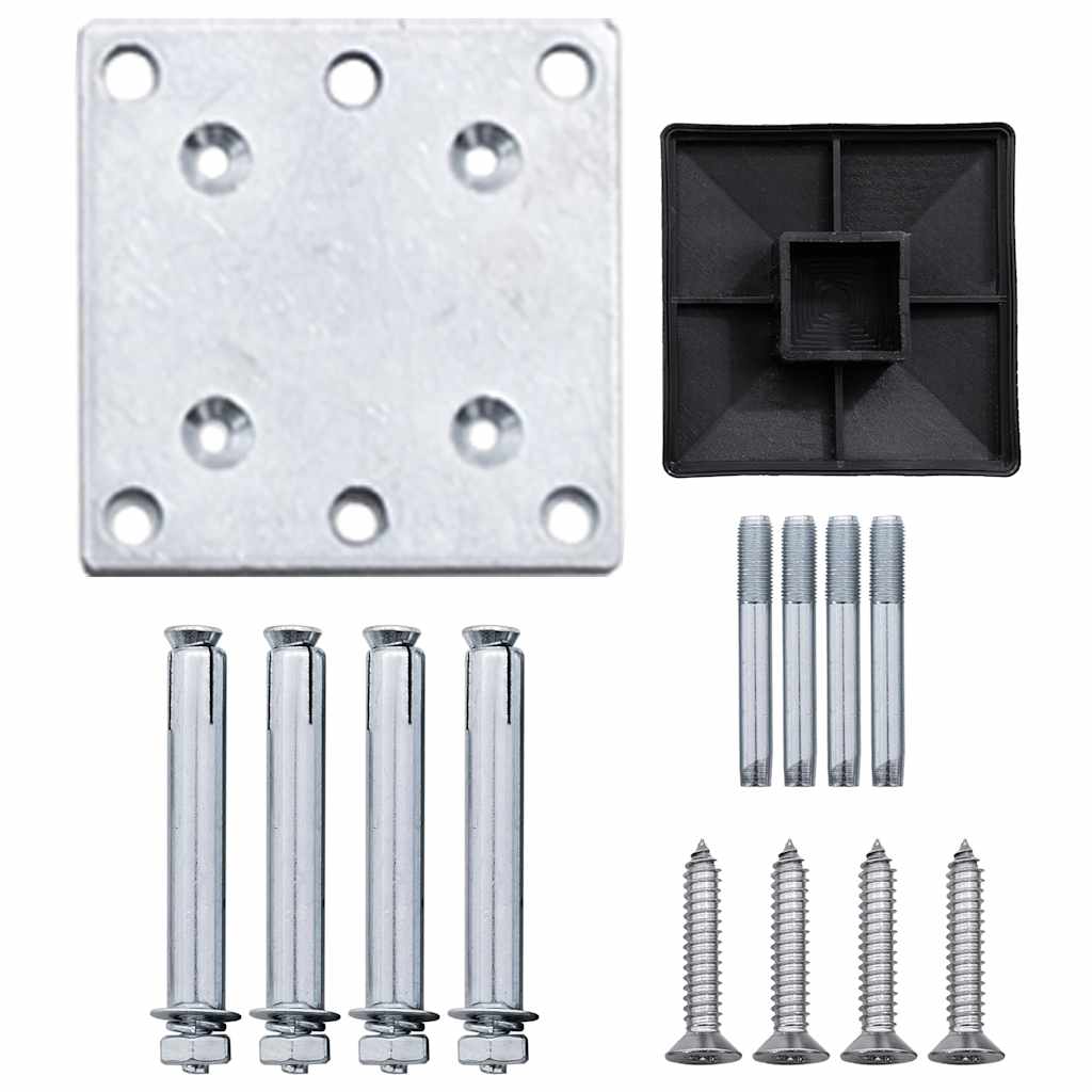 Progettate con il sistema modulare, le assi di recinzione sono facili da installare e consentono di espandere la recinzione liberamente. I pali sono dotati di tre fessure, che consentono di assemblare la recinzione in vari modi, ad esempio in linea retta (180 gradi), ad angolo retto (90 gradi) o a forma di "T". I piedini multifunzionali in acciaio possono essere fissati in due modi. Il primo è avvitarli su una superficie, utilizzando le viti di ancoraggio in dotazione. Il secondo modo consiste nell'ancorarli a una base di cemento, utilizzando il picchetto incluso nella consegna.