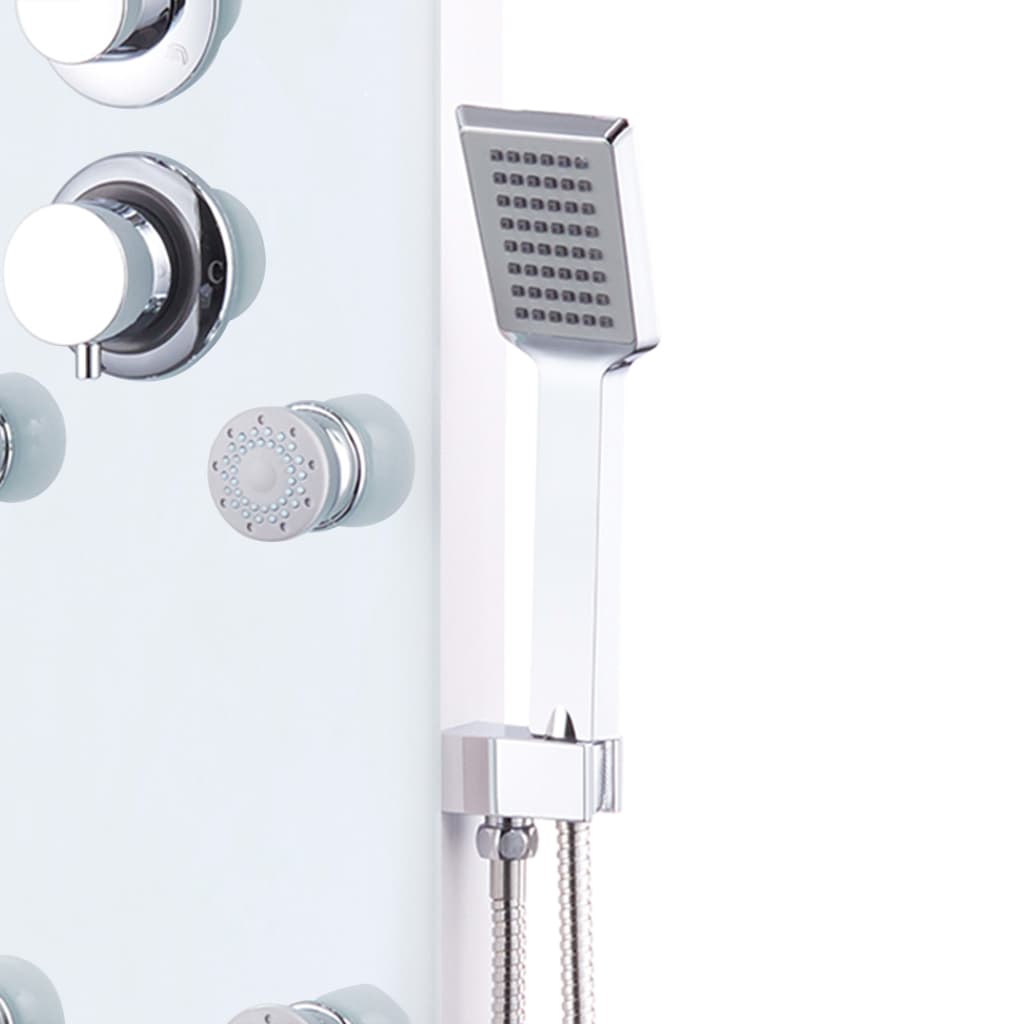 La colonna doccia è realizzata in acciaio inossidabile e vetro temperato. Il vetro temperato è stato prodotto mediante trattamento termico e chimico controllato, che lo rende più resistente e sicuro rispetto al vetro normale. È dotata di tre funzioni doccia differenti: doccia a pioggia, getto massaggiante e doccia a telefono, molto semplici da selezionare. Gli ugelli in silicone sono resistenti alla formazione di residui di calcare. Immergetevi in un'esperienza incredibilmente rilassante grazie a questa colonna doccia, apprezzandone al contempo lo stile moderno e lo splendido design! Facile da assemblare.