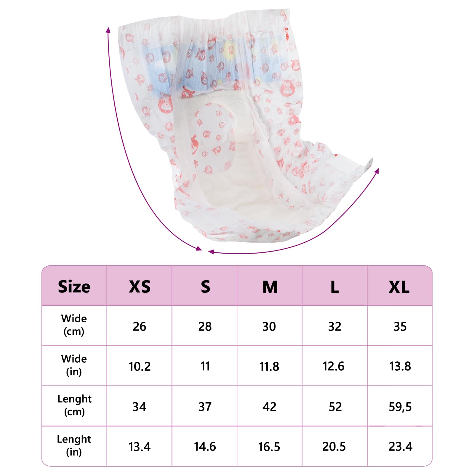 - Materiali: Questi pannolini sono realizzati con un foglio superiore non tessuto e un retro in pellicola PE, garantendo traspirabilità e prevenendo perdite. Il polimero super assorbente e la polpa di fluff migliorano l'assorbenza, rendendoli perfetti per un uso prolungato senza disagio. I materiali sono scelti per garantire un'esperienza comoda per il cane, e tranquilla per te, grazie alla loro affidabilità in diverse situazioni.