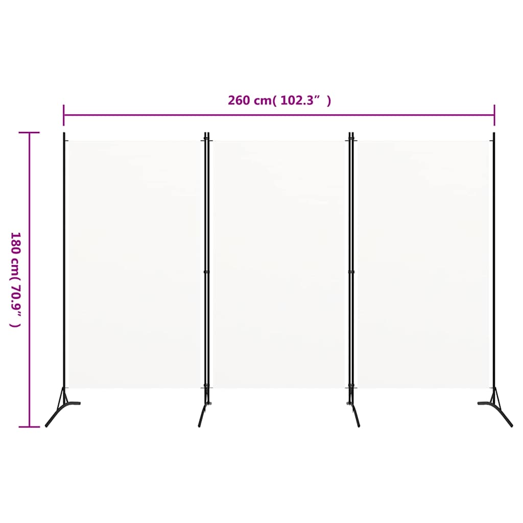 Divisorio a 3 Pannelli Bianco 260x180 cm in Tessuto 320731