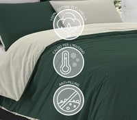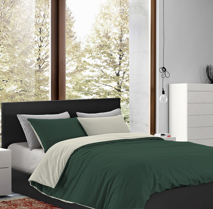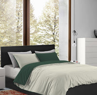 Parure Copripiumino in Flanella Felpato Bicolore Sacco e Federe Double Face 100% Cotone - Verdone-Beige - Piazza e mezza