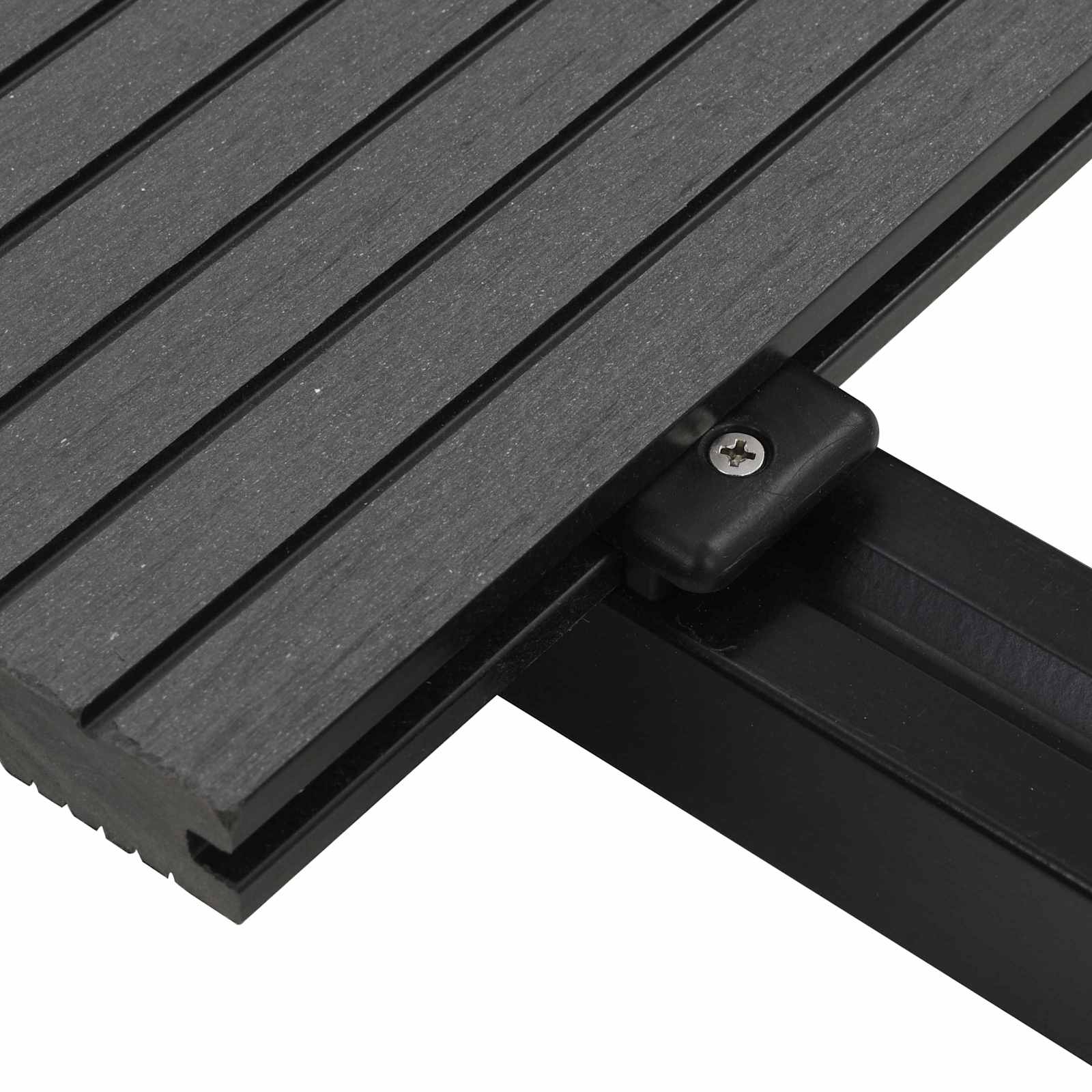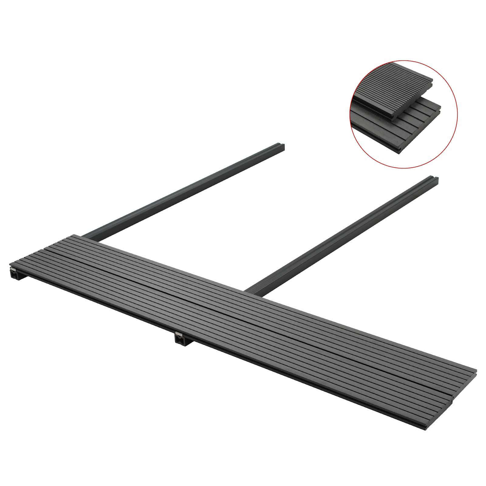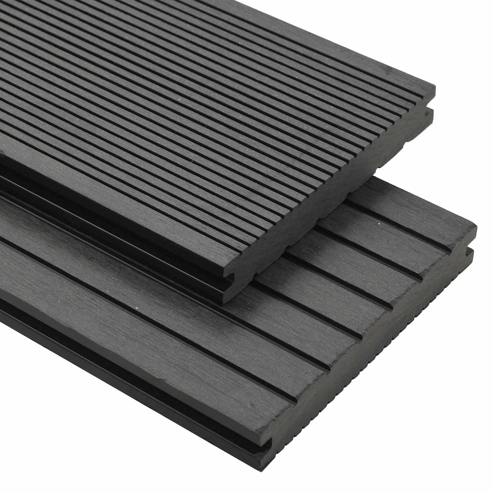 - Materiale WPC di alta qualità: Fatto con un WPC resistente, il decking assicura una superficie stabile. La tonalità grigia dona profondità ed eleganza, creando un aspetto armonioso.