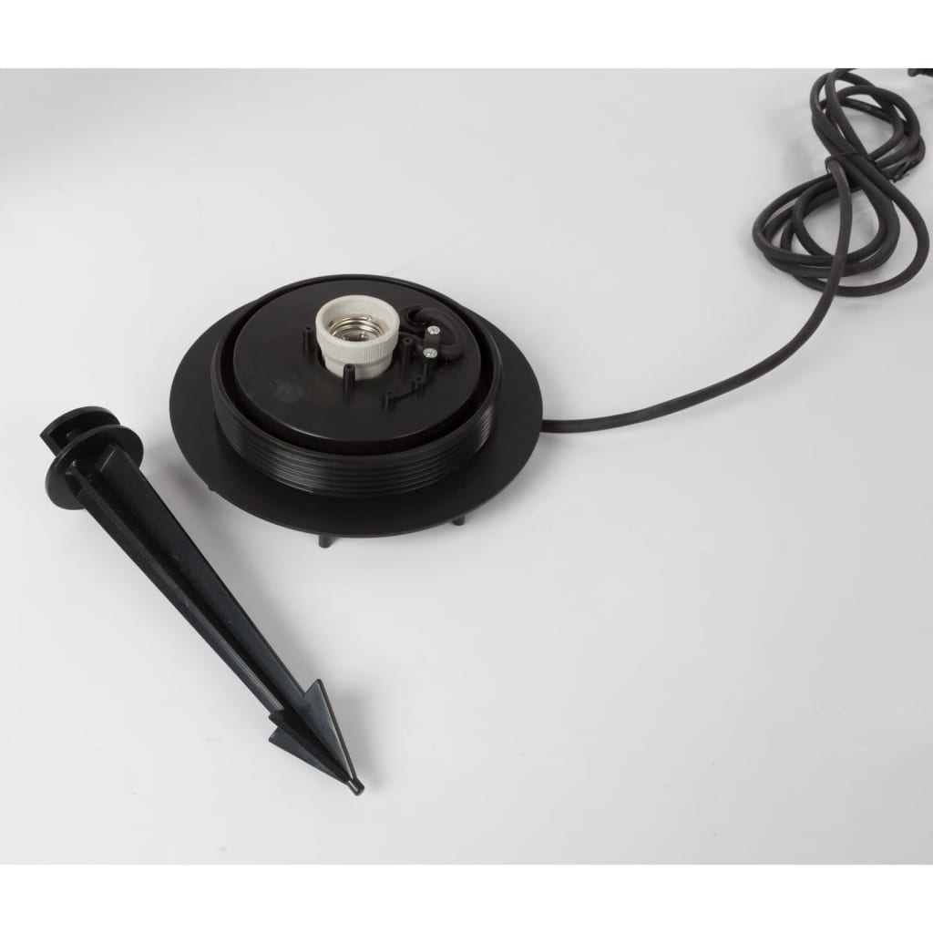 È alimentato a rete elettrica e utilizza una lampadina di max. 23 W (lampadina non inclusa). La moderna lampada da terrazza è caratterizzata da un picchetto a terra nero. Il colore bianco del paralume conferisce un tocco classico.