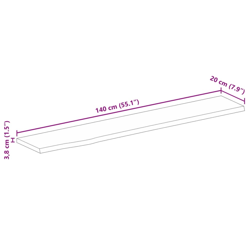 Piano Tavolo Bordi Vivi 140x20x3,8cm in Legno Massello di Mango 370567