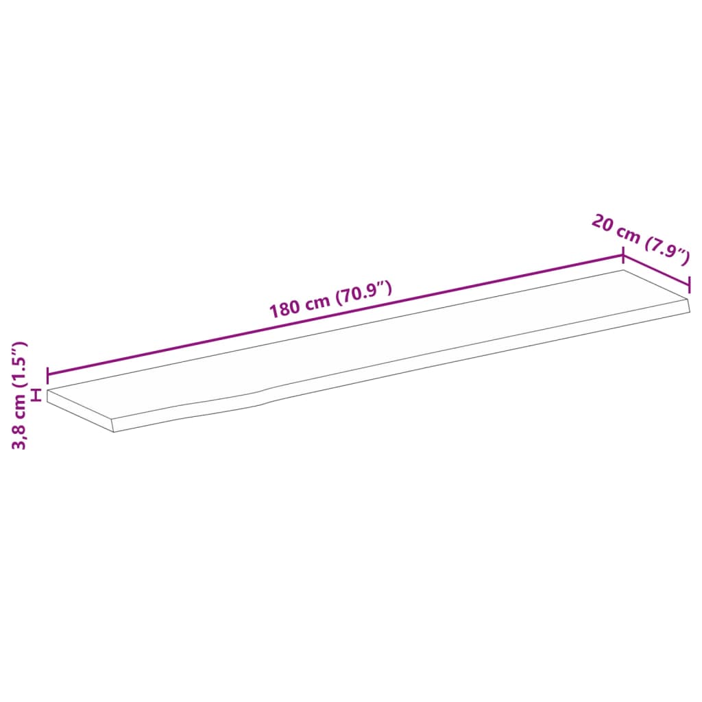 Piano Tavolo Bordi Vivi 180x20x3,8cm in Legno Massello di Mango 370473