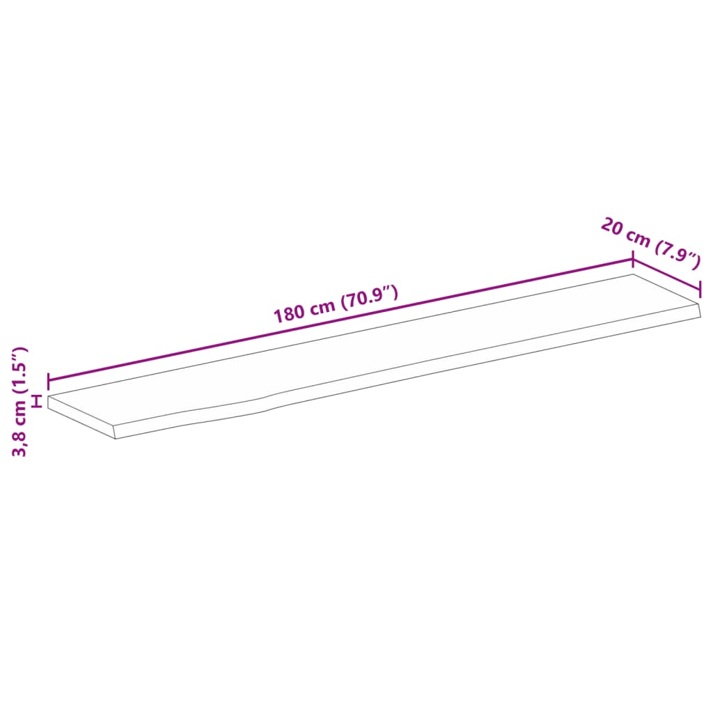 Piano Tavolo Bordi Vivi 180x20x3,8cm in Legno Massello di Mango 370569