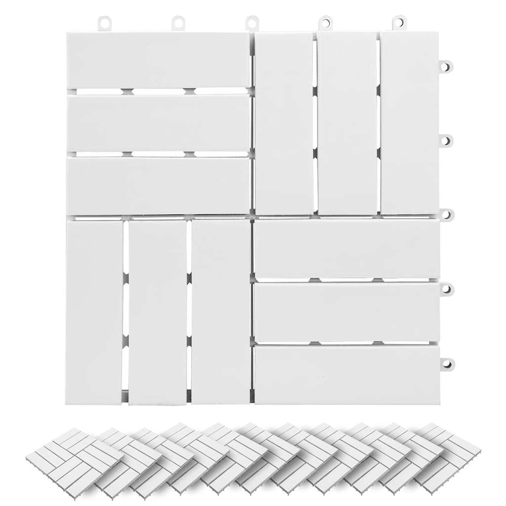 Piastrelle Esterni 10 pz Bianche 30x30 cm Legno Massello Acacia 310118