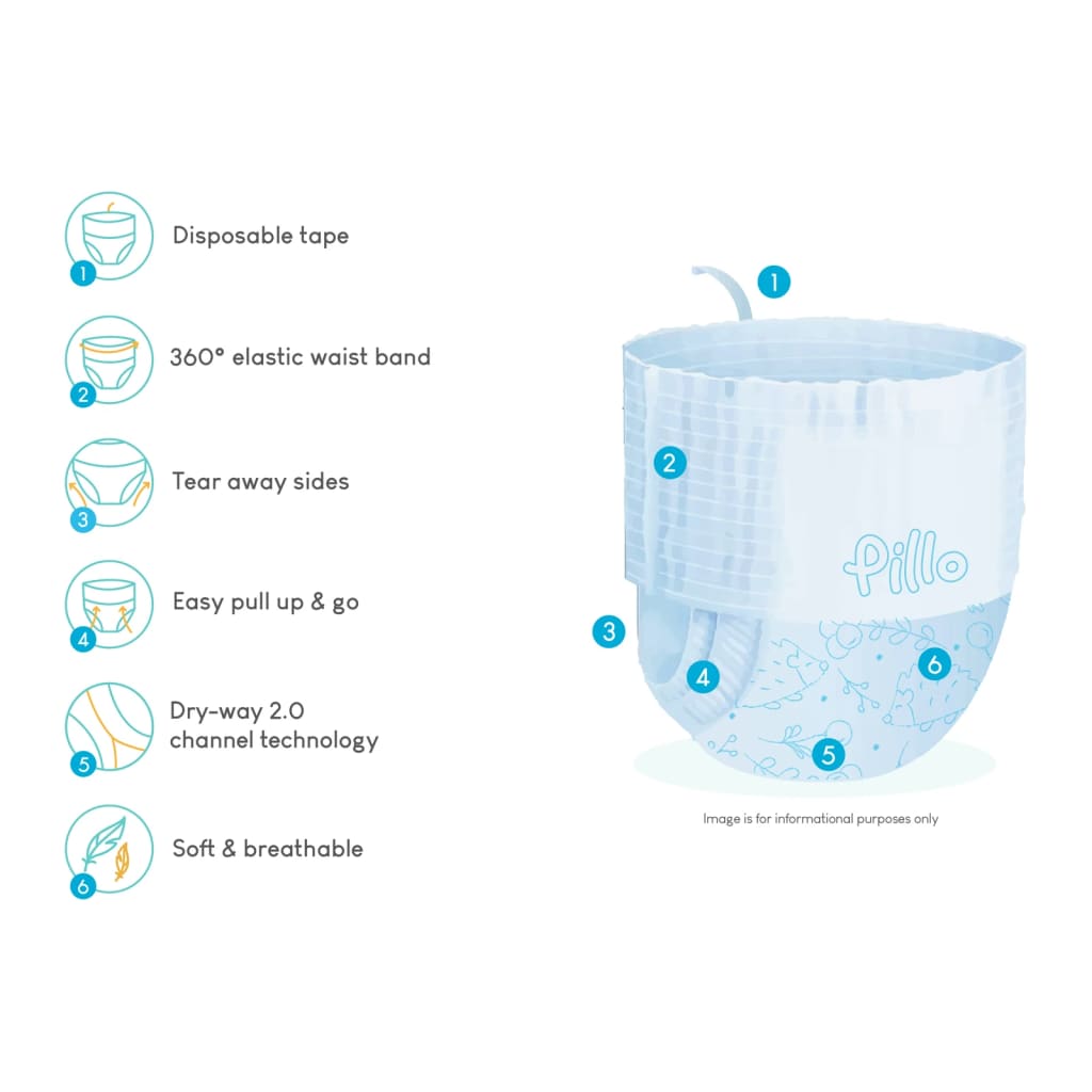 - Morbido e confortevole: Progettati per le pelli delicate, questi pannolini a mutandina sono stati realizzati con materiali morbidi e traspiranti e presentano uno strato interno in rilievo per offrire una morbidezza e un comfort maggiori.
