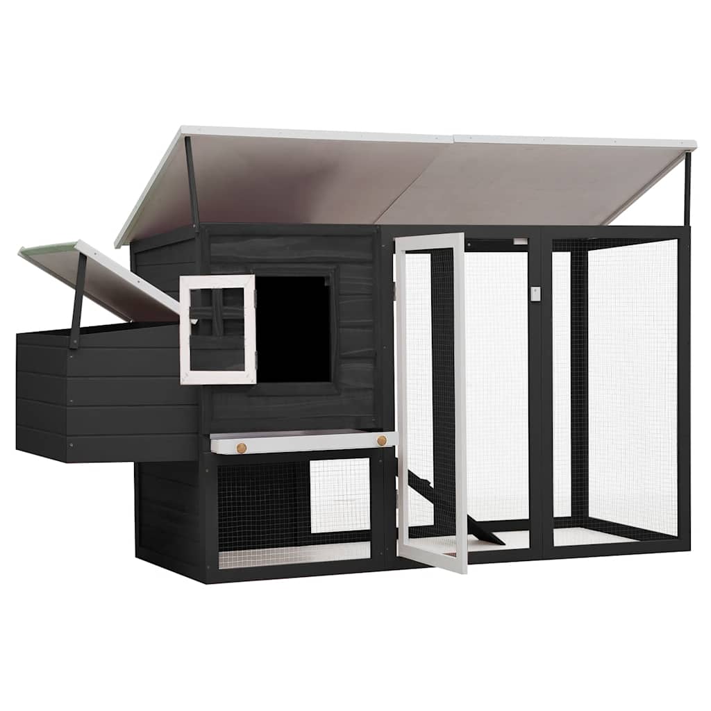 Pollaio all'Aperto con 1 Casetta di Cova Grigio in Legno 170846