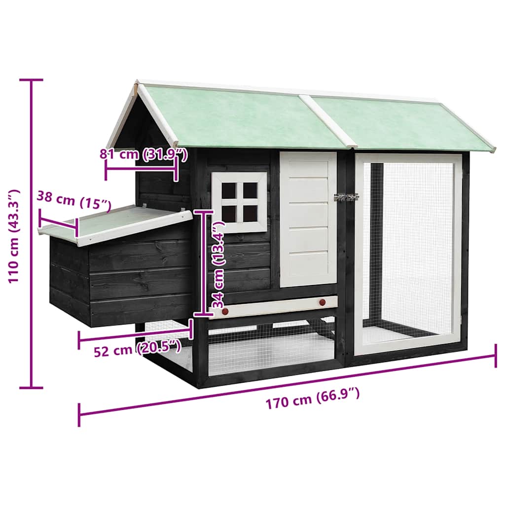 Pollaio Grigio 170x81x110 cm in Legno Massello di Pino e Abete 170861