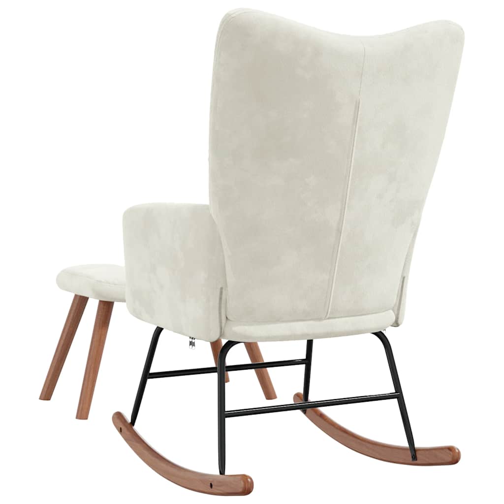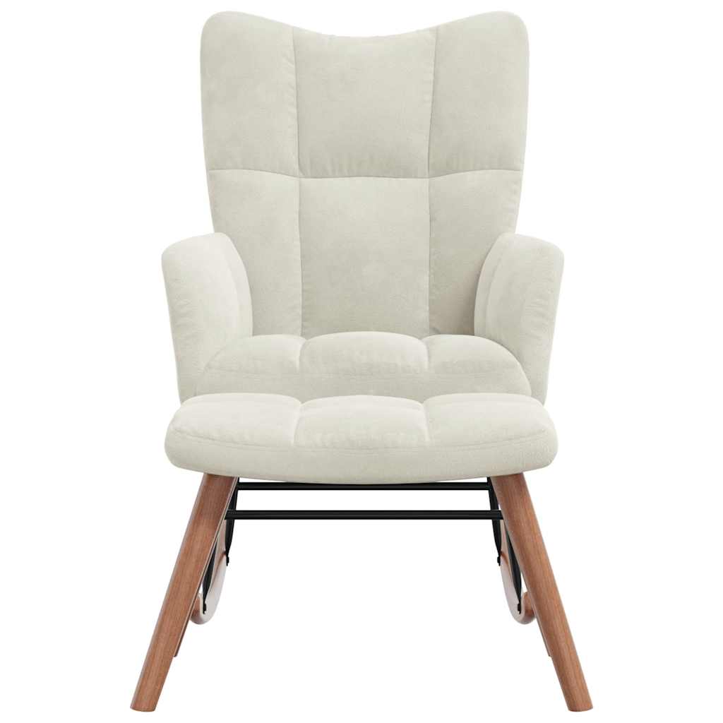 Poltrona a Dondolo con Poggiapiedi Bianco Crema in Velluto 328159