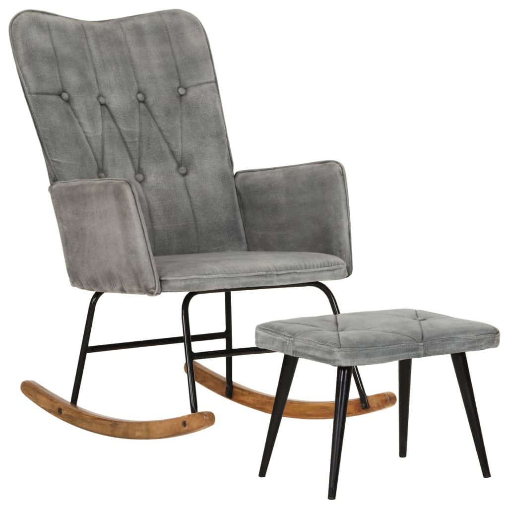 Poltrona a Dondolo con Poggiapiedi Grigio Vintage in Tela 339701