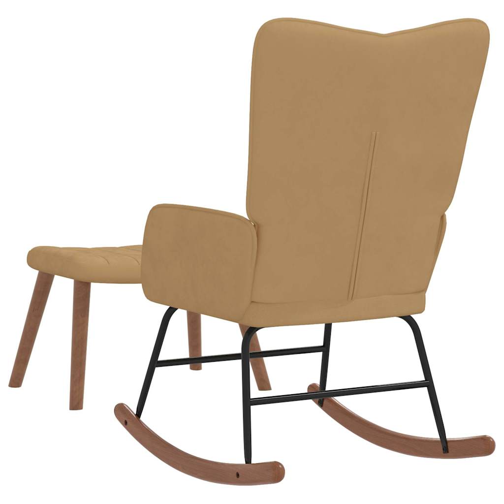 Poltrona a Dondolo con Poggiapiedi Marrone in Velluto 327762