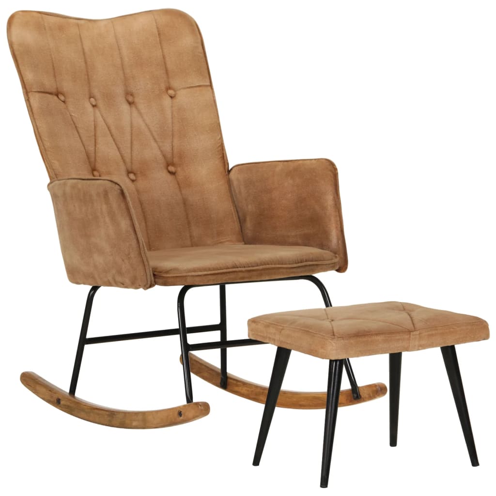 Poltrona a Dondolo con Poggiapiedi Marrone Vintage in Tela 339700
